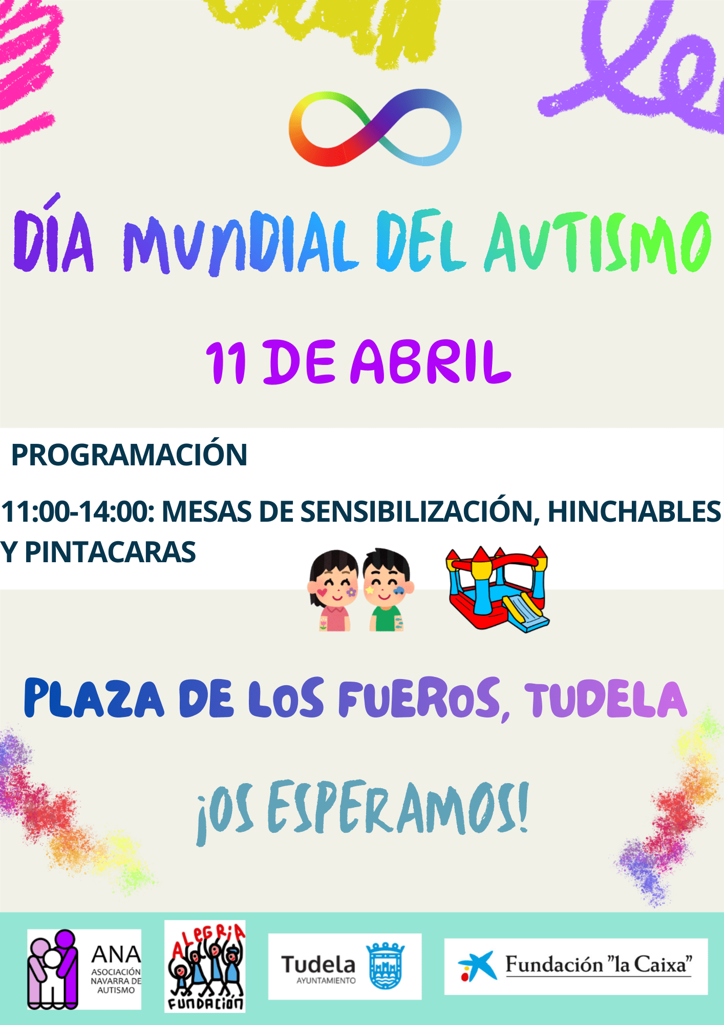 📍Desde las 11:00 hasta las 14:00 en la Plaza de los Fueros tendremos: Mesas de sensibilización, hinchables y pintacaras. 🎨